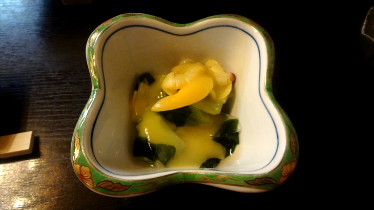 若者には少し物足りないかもしれませんが、我々シニアはこれで充分。最後にあさりのお味噌汁とデザートのきなこ餅、上りの熱いお茶、1時間半の夕食も終了~、7500円也。そして、タクシー1メータで帰宅。
