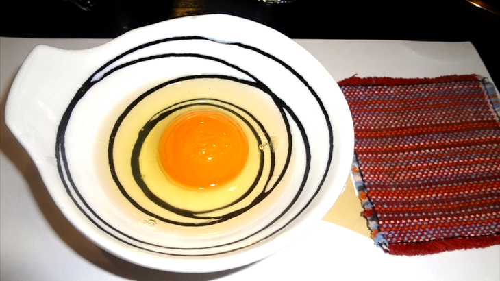 しばらくすると、プルップルで弾力のある白身に濃いオレンジ色の黄身が特徴の山形県米沢市にある山田鶏卵「紅花たまご」とロゼダンシュ、すき焼きセットが登場。