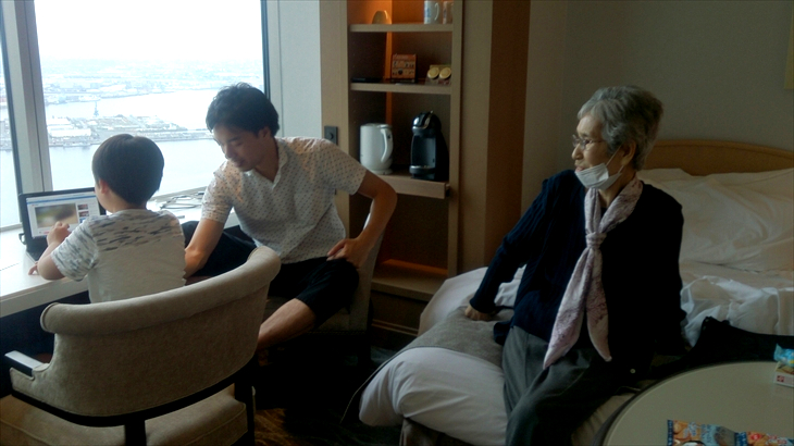 おばあちゃんが入院して約50日、初めて3泊4日の一時帰宅が実現しました。旅行気分でランドマークタワーのロイヤルパ^クホテルに1泊し、その夕ご飯は親族が集まり岸根公園近くの「美ゆ喜鮨」でお祝いしました。