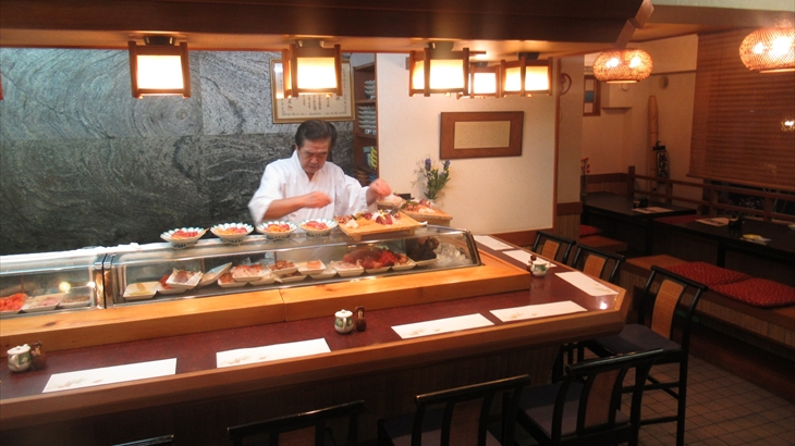 一時帰宅のお祝い会場は美ゆ喜鮨。18時、13名でお寿司中心の5000円コースを予約していました。