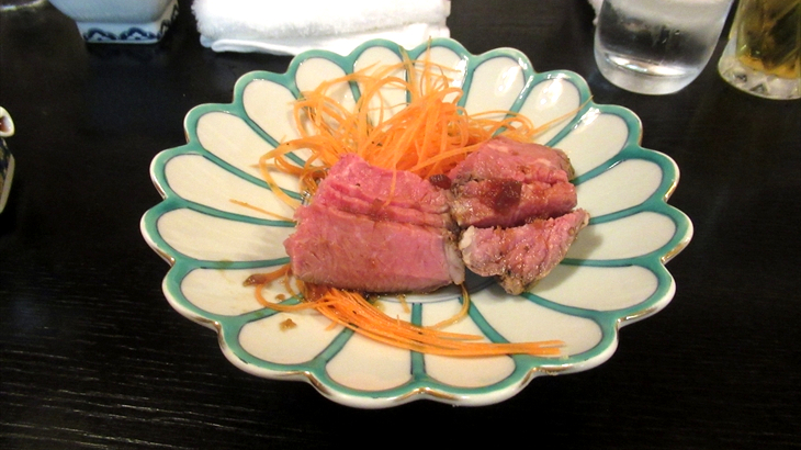 ローストビーフ、お刺身の盛り合わせが登場しワインボトルなどを注文しお祝いの会がゆっくりと進行します。