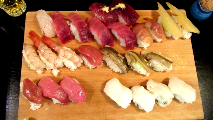 しばらくすると鮎の塩焼きとお待ちかねのお寿司(13貫/人)が登場し食事会も佳境・・・