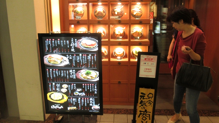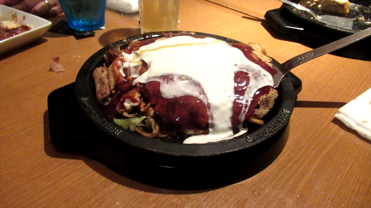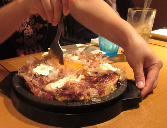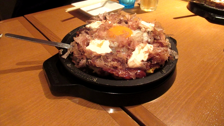 チェックアウト後、宴会場の大階段へ再度行き記念撮影。ランドマークタワーを少しブラブラし、お好み焼きのお店「ぼてじゅう」に入り、明石焼き、お好み焼き、モダン焼きなどをパクリ。