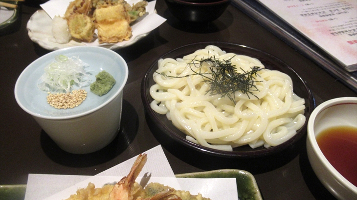 しかし、今回は天ぷら6点盛り・ざるうどん・茶碗蒸し・抹茶アイス・おしんこがセットになっている天婦羅ざるうどんセット(1、295円)と色々な種類のネギの天婦羅を注文しました。