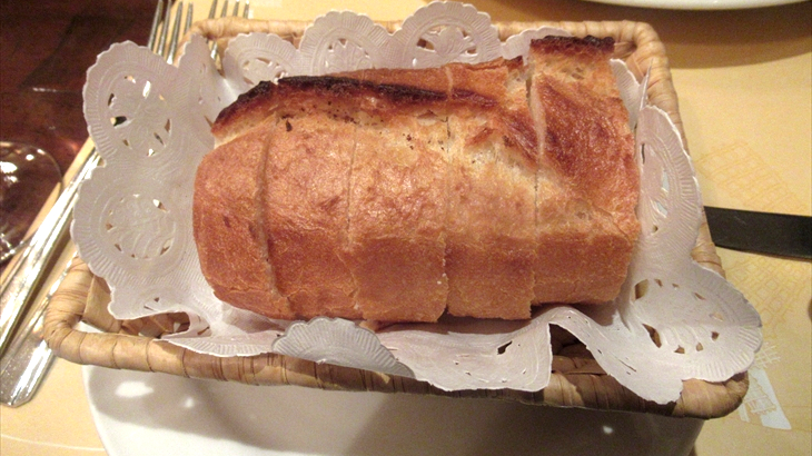 白ワインのボトルとランチコース(3350円/名)、追加で美味しいと評判のニンニクスープを注文。