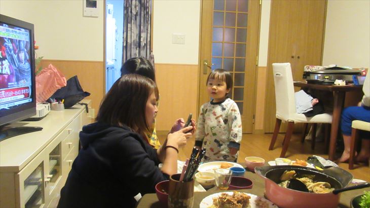 15:30、笹塚まで次女と利太朗くんをお迎えに行きました。二人を連れて実家についたのは16:30、ほどなく長女家族がやってきました。アヤちゃんが利太朗くんと遊んでくれるので皆助かってます。