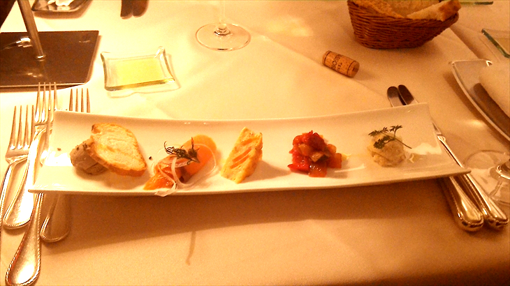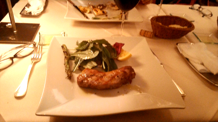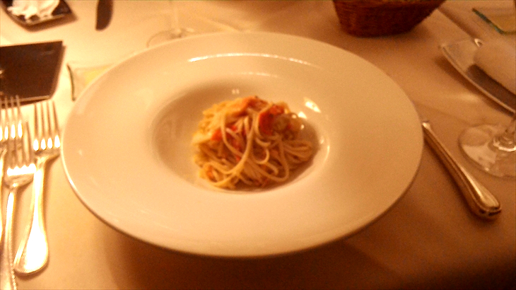 コース料理は前菜、パン、パスタ、お肉料理とお魚料理の選択、デザートです。アラカルトで追加した「器で和えたスパゲッティ」では、これを初めて食べた長女が自分でお皿を持ってお代わりに並んだという過去の話になります。