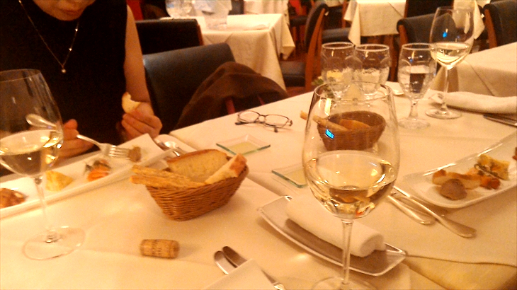 2017年の結婚記念日は7時に電話予約し、昨年結婚した次女も参加し3名。イタリアンレストラン「Trattoria Mezzanino」は中2階なのでエレベータは止まりません、階段を上がっていくと窓際の席に案内されました。まだ、他のお客様はいません。