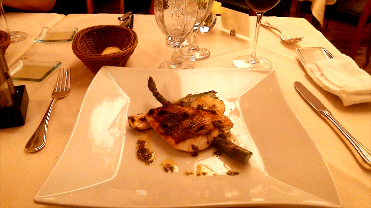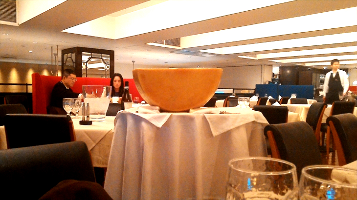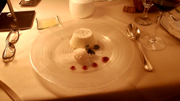 コースの途中で赤ワインボトルを追加注文。他のお客様は我々以外に3組、約80席ある店内は閑散とした様子でしたが、接客はさすが一流レストランでした。
