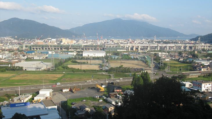 敦賀の朝は晴れ。ホテルの部屋から見える新幹線工事中のこの写真が好きです。