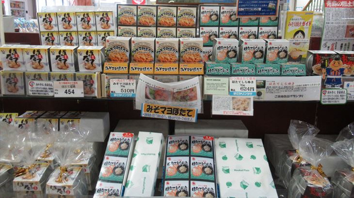 横浜町から約1時間走り、下北半島の真ん中のむつ市に到着、むつ下北観光物産館まさかりプラザに立ち寄り、ねばりとろろと帆立缶3缶を購入しました。