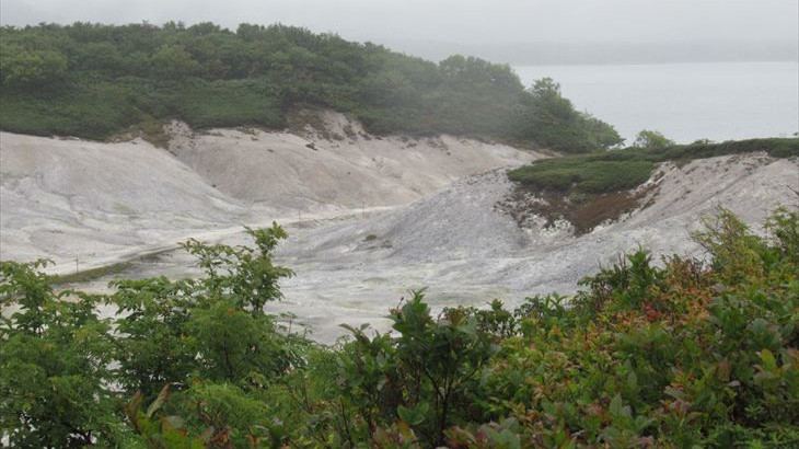恐山は地獄と極楽があります。火山ガスが噴き出す岩肌を有する場所が地獄、地獄を歩いていると突然白浜の湖が広がりここが極楽浜と呼ばれる極楽です。