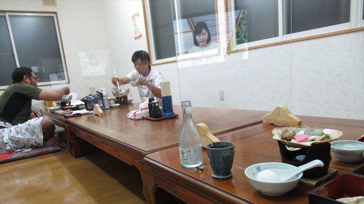 宿泊の観光客は私1人、その他1組2名は工事関係で連泊してるお客様の合計3名でこの民宿に宿泊。熱めのお風呂に入浴し生ビール。これが旅の醍醐味・・・・