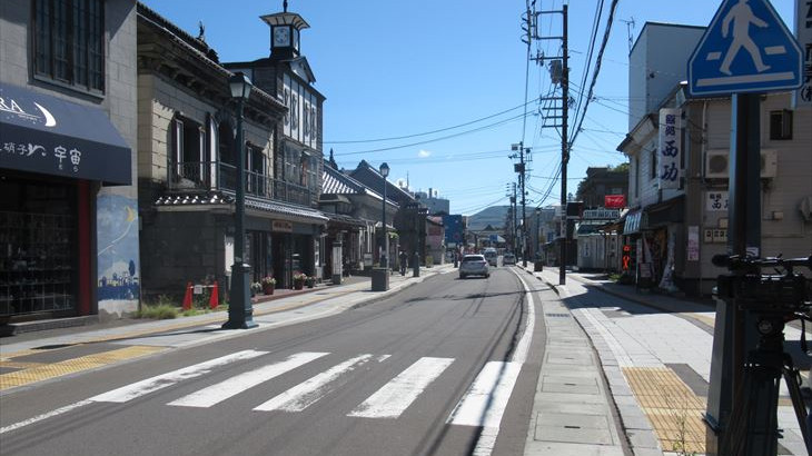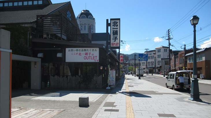小樽市堺町通りを見学。観光客は修学旅行の子供達と若いカップルだけ。でもお店は全部オープンしてました。北一硝子館が経営する駐車場に止め、40分くらいこの通りを散策、途中美味しそうなお店でコーヒーブレイク、これが本日のお昼ご飯になりました。