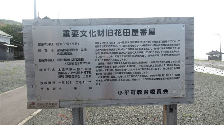 留萌の千望台から北へ、小平町の道の駅「道の駅 おびら鰊番屋」に9:39到着。道の駅に併設されてる重要文化財旧花田家番屋を見学。道の駅のグレードを上げるためにこうした歴史施設とのコラボが町おこしとして増えてますね・・・・