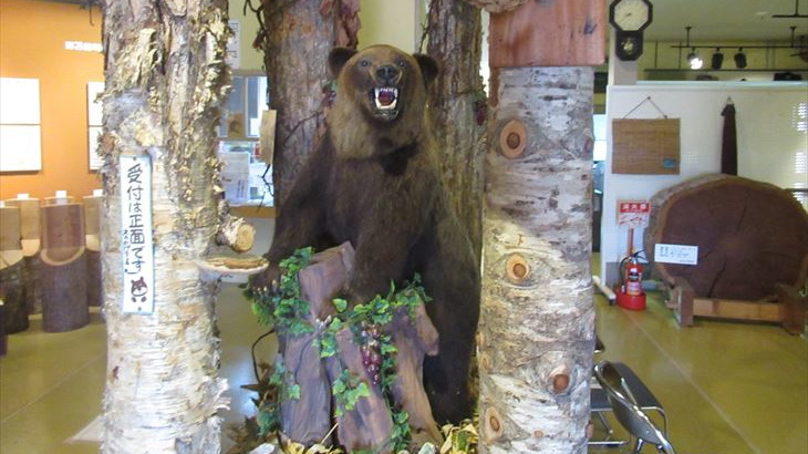 苫前の街に入りました、ランドマークはとままえベアー、これを撮影したすぐ近くに苫前郷土資料館はあります。その昔、自宅にいたアイヌ人を熊が襲撃して6名殺害したことがあった。怖い~~