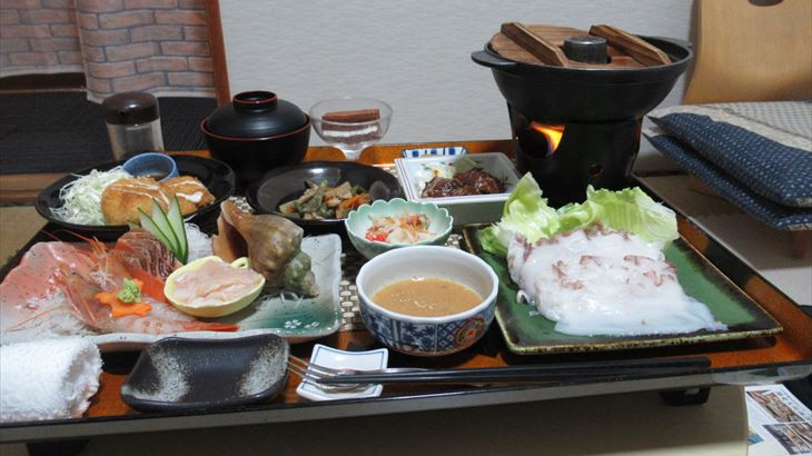 宗谷岬の女将さんは気さく。夕食、朝食の両方ともコロナ対策のために部屋食、半分の予約しかとらないようです。チェックインは15:40、ブログ作成、ハイボール飲み、お風呂してたりしたら18:30。食事が運ばれたきました。たこのシャブシャブ、初めてです。お料理はさすが全て美味しかった~~