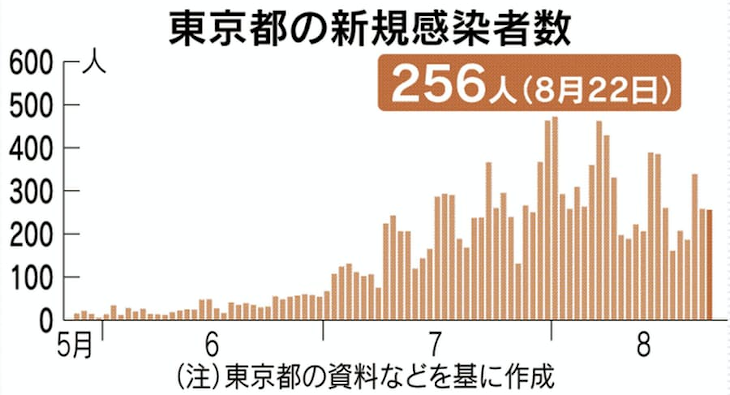 日本一周一人旅の前日(8月22日)の東京のコロナ感染者数は256名。一月前の予想とは大幅に異なり、一進一退の状況。専門家分科会によると7月末時点でピークを向かえたという報道もあった。