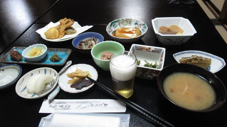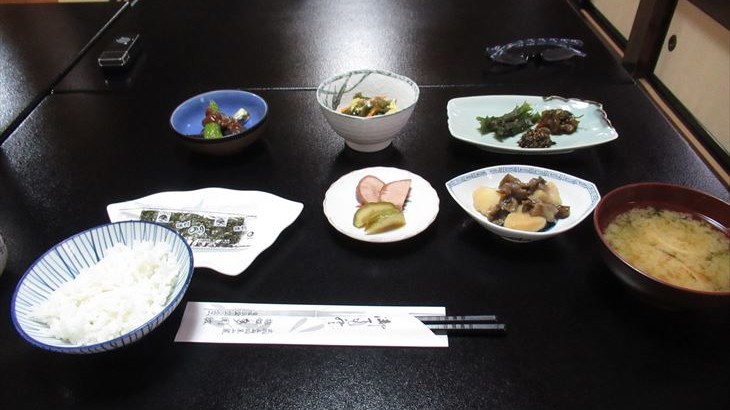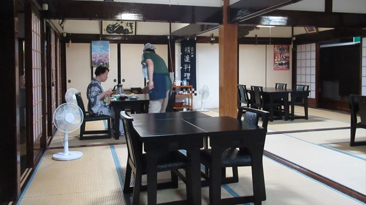 夕食はお魚・お肉のない精進料理、お客さんは、昨日から宿泊してる女性と私の2人だけ。世間話をしながら楽しく食事しました。なんでしょうか、このお部屋は襖ばっかり、これも面白いね・・・・