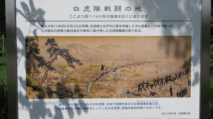 飯盛山へ行く前に、戸ノ口原古戦場跡に立ち寄りました。ここは、白虎隊が西軍と一戦まじえた場所、ここから白虎隊戦士は飯盛山に向かった。