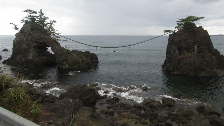 海岸線を走っていると観光名所になってる岩があります。あのトトロに似ている「トトロ岩」、伊勢の二見ヶ浦の夫婦岩にそっくりだけどそれほど有名ではない「機具岩」。能登半島まで来ないと会えない風景です。