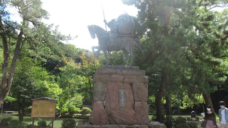 金沢駅の鼓門(つづみもん)に到着したのは12:21、記念写真を撮影。金沢城公園近くの駐車場に車を停め、加賀100万石の創設者、前田利家公の菩提寺「尾山神社」見学をしました。