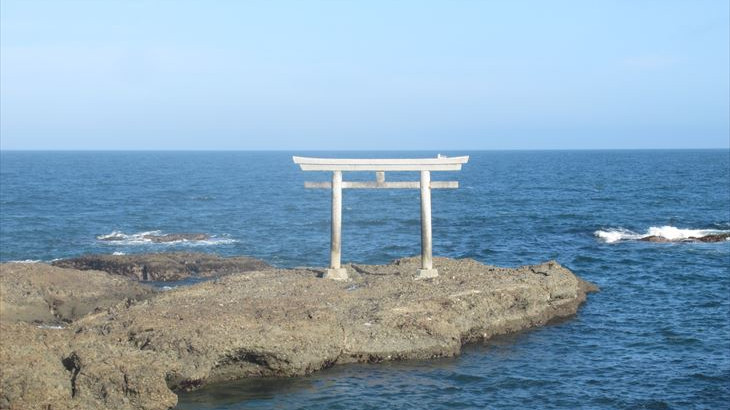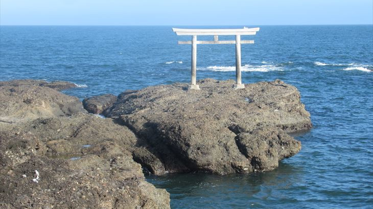 海上の岩の上に鳥居が立っています。夕日、朝日のタイミングでは絶景。有名な観光スポットらしく若者たちがたくさんいました。