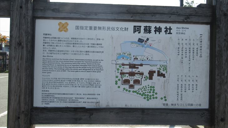 大宰府のホテルから熊本県の阿蘇神社は109km。途中、道幅が狭くなる山道を運転、阿蘇に近づいてくると道も良くなり、独特な景色にお目にかかれました。7時30分に出発して到着したのは10:10。