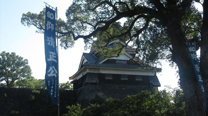熊本城見学は徒歩で向かおうとしましたが、入場できる場所が限られていて距離がありそう、車で行くことにしました。ナビで案内されたのは加藤清正公神社境内の駐車場、ここも行きたかった場所。