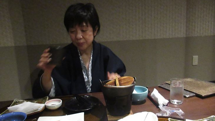 お風呂に入って、18:30からの夕食。律子さんは焼酎ロック、私は生ビールで乾杯~~