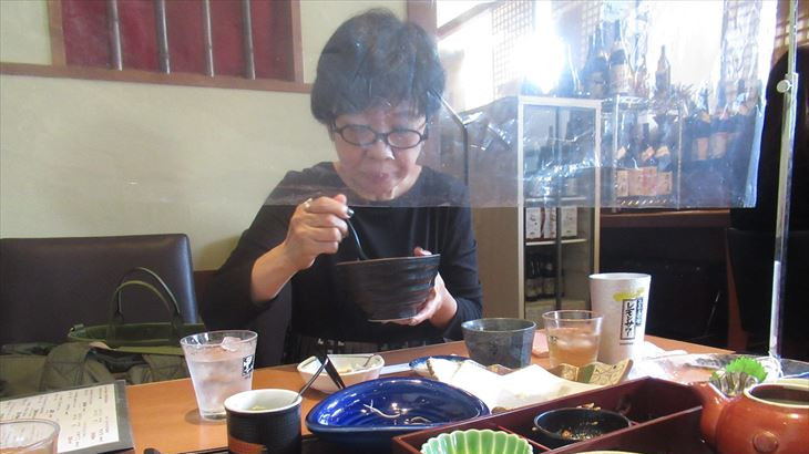 「魚采や朝次郎」に入店。お魚定食のライスを320円追加して鹿児島B級グルメ「鶏飯(けいはん)」に変更。これをおつまみにしてレモンサワー、焼酎3杯をお互い飲み、最後に「あら煮」を追加し14時ころまで楽しみました。ここで律子さんは帰路・・・