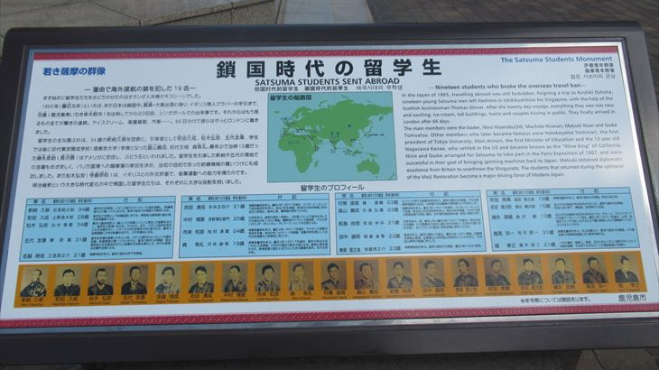 鹿児島中央駅のロータリーに設立されてる銅像。これは昨日見学した英国留学した薩摩藩士19名、66日間かけて英国に到着。ロンドンで文明を学んだエリート達です。