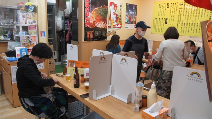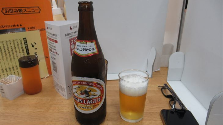カウンターの席に座りビールでお疲れ様。大粒な牡蠣焼き3個(牡蠣を4個に変更)がセットになってるスペシャルお好み焼きとイカ焼きで広島を堪能、とっても美味しかった。