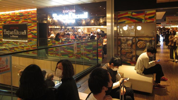 三次会はホテル近くのデパート「エイールエール」の11階のフードコート、窓際に陣取り、たこ焼きとビールで閉めました。