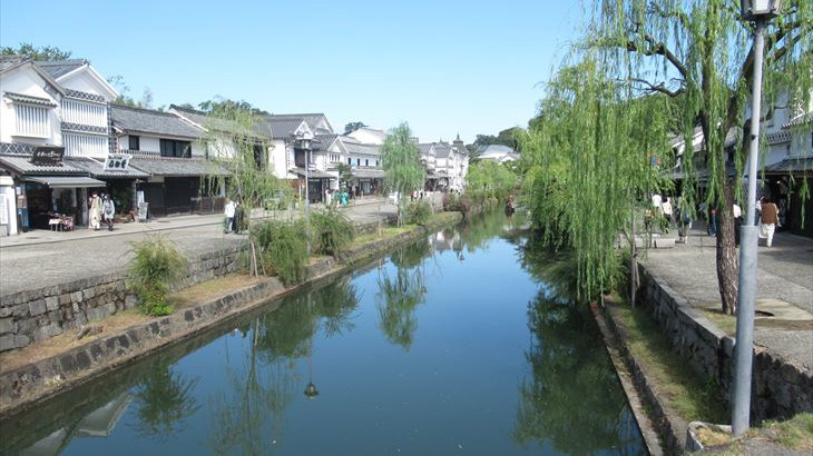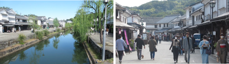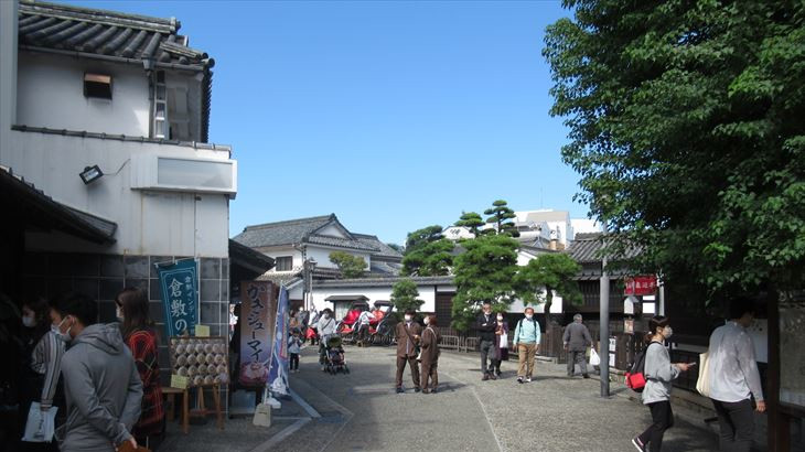 広島から約130km一気に走行し、倉敷美観地区に10:56到着。レトロなお店が並んでる川沿いを散策、倉敷駅前ストリートまで約10分くらい、そこから別の道で街並み見学。全ての場所がSNS映えするスポット、若者がスマフォ片手に写真撮影。