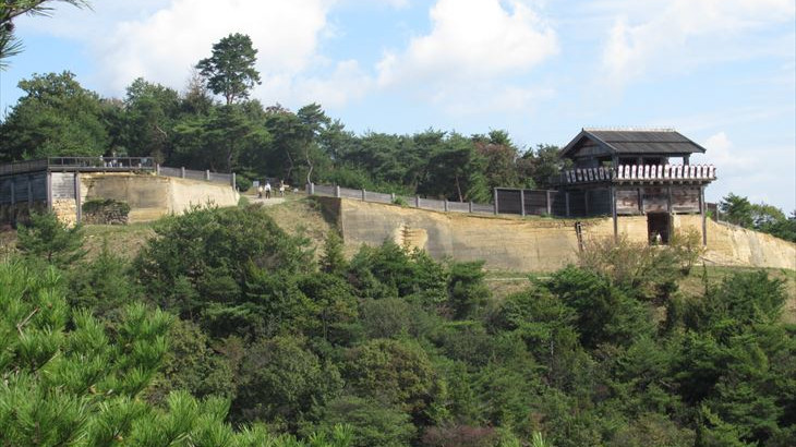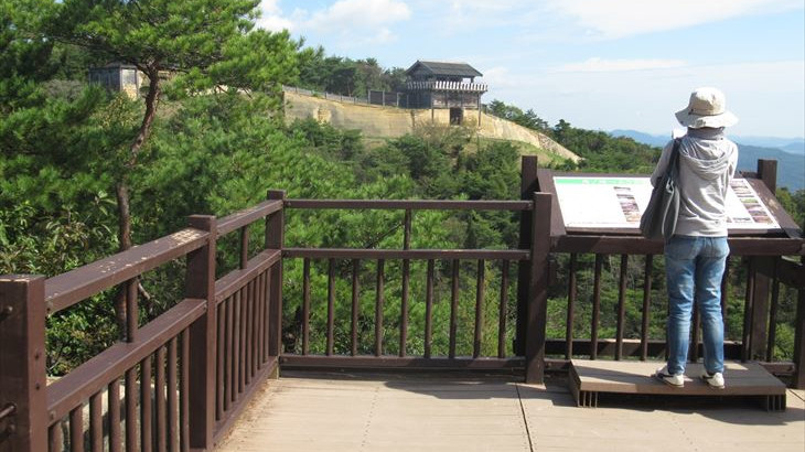 古代の山城、歴史的な解明がされてない謎の城跡。ここの駐車場まで到達するためには対向車が来たら大変な山道を3km程運転しなければならない。駐車場から鬼ノ城跡までは約10分位歩くと到着します。鬼ノ城跡自身の景観、そこからの景色が素晴らしい。