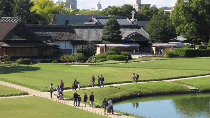 天守まで登り記念撮影したあと、岡山城と後楽園を結ぶ橋を渡り庭園見物。真ん中に広場があり、その周辺を散策すると全体見学できるように設計されていて素晴らしかった。これで日本三名園(水戸市の偕楽園、金沢市の兼六園、岡山市の後楽園)を制覇しました。