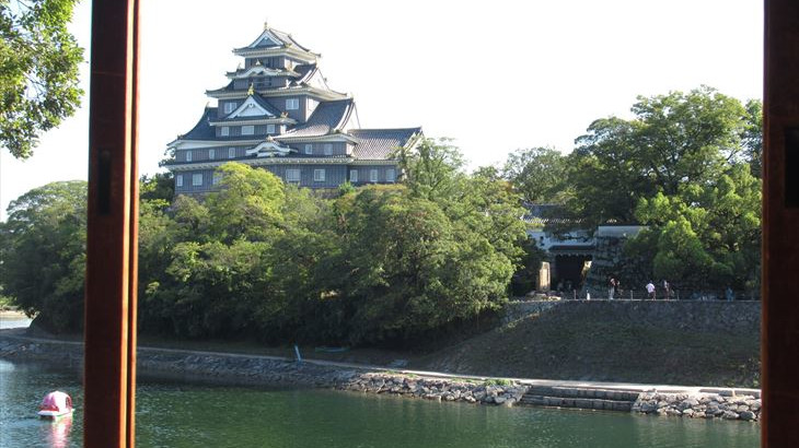 岡山城に到着したのは13:37、石段の山登りはほとんどなくお城まで着きました。城壁が黒いお城は岡山城と松本城、築城した宇喜多秀家が秀吉に信頼されていたので金シャチホコを沢山くっつけることが出来たんだって。