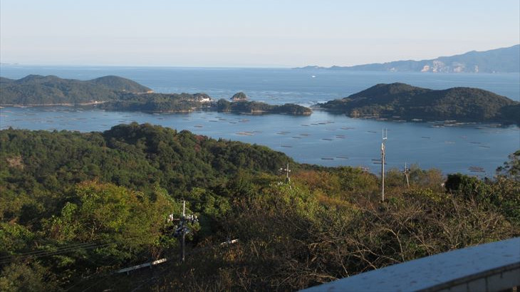 本日最後の観光は牛窓オリーブ園、ここも対向車来ないようにお祈りしながら山登り運転して到達する観光地。売店のある展望台から小豆島、小島、オリーブ畑などが望める景観地、記念写真撮影をして売店でオリーブオイルをお土産に買いました。