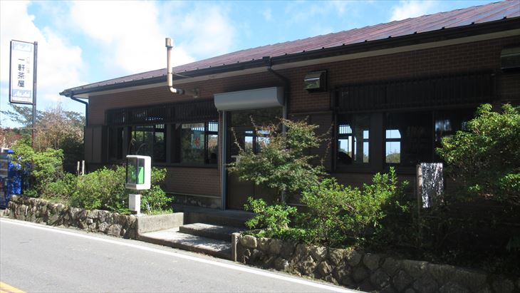 ナビが到着したと言ってますが、一軒茶屋しかありません。ここでアイスコーヒーを注文し、聞いてみるとここから徒歩で山頂に行けるようです。登ってみました、登山の山頂みたいに山頂の標識がありました。