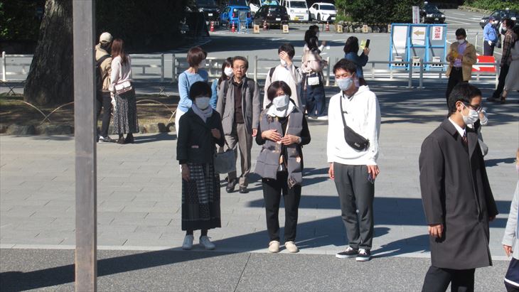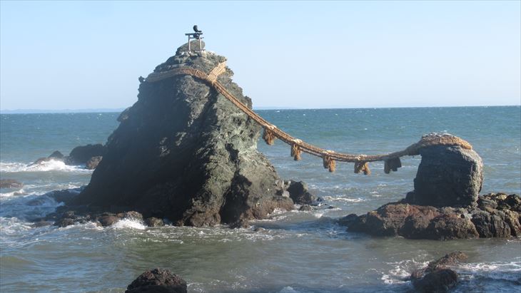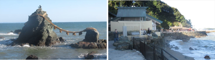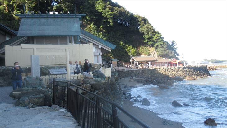 夫婦岩で有名な海沿いにある「二見興玉神社」に到着したのは8:39。朝早いのに駐車場は満車、観光客がたくさんいました。