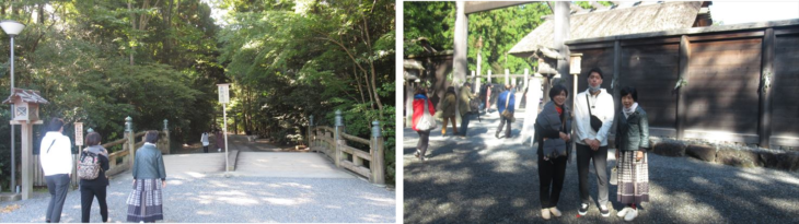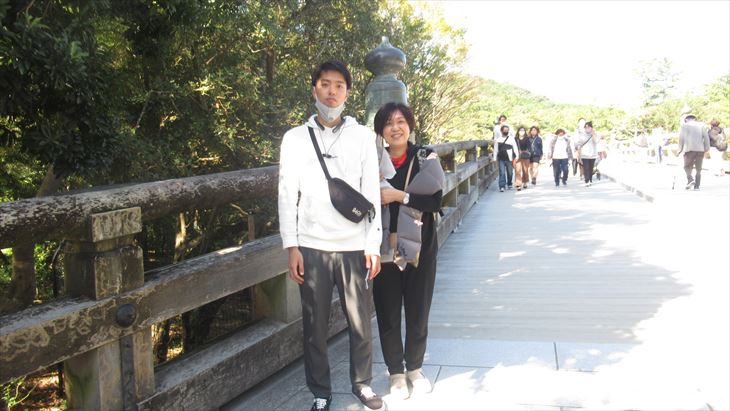 10:33、おかげ横丁の終点が内宮参道の入口、これから右側通行の太鼓橋を渡って内宮を目指します。無事お詣りも終わり、昭子さんは御朱印を頂きました。