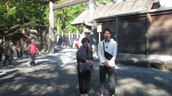最初の観光はお伊勢さん。9:30頃、外宮に到着しておよそ20分くらいでお参りしました。
