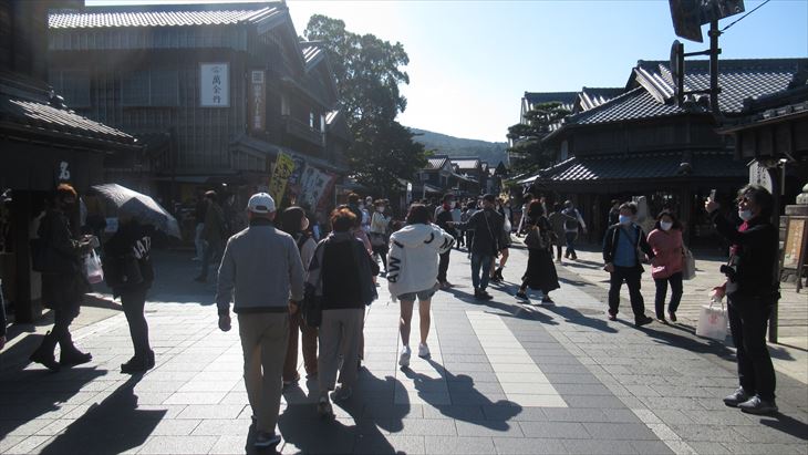 そして内宮に移動、外宮から3kmも離れてるのですね、知らなかった。おかげ横丁の入口付近に駐車してお店見学しながら内宮に向かいました。赤福が見えてきました、ここで一休み。