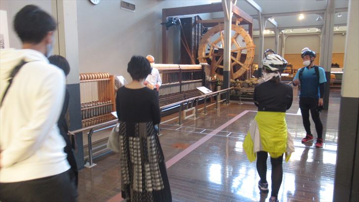 赤レンガの大きな建物の中に記念館はありました。伊勢神宮は物凄い人混みでしたが、ここは比較的空いています。でも展示内容は抜群。トヨタ自動車は紡績工場がその前身、綿から糸ができる仕組み、機織り機の進化、現在の全自動カラー織り機までの仕組みを何人もの係の方が実際に機械を動かし説明してくれます。とてもわかり易くかった。