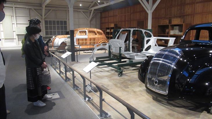 紡績工場の次は、国産乗用車にこだわったトヨタの第一号乗用車が開発された歴史をパネルだけでなく実物を見ながら、係の方が説明してくれます。展示終了の16:30まで見学しました。2時間以上~~