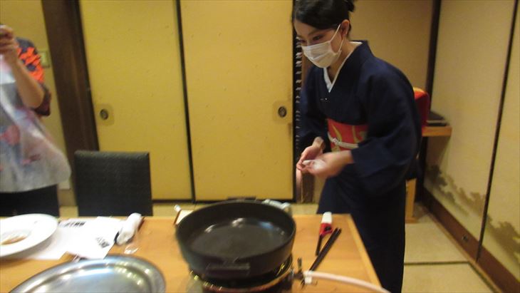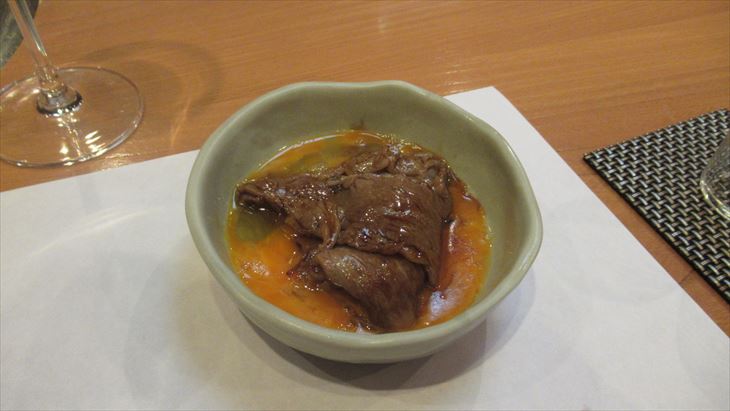 サラダ、ローストビーフの前菜を頂くと、本日のメインのすき焼きを係の方が焼いてくれました。初めてすき焼きをお店の方に焼いてもらった松坂「和田金」、30年くらい前はとっても緊張しましたが、今は平気。歳とりましたね。