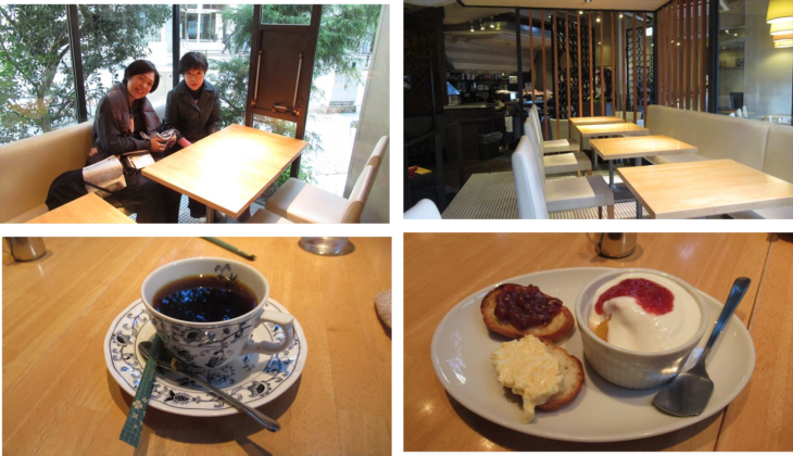 6時30分にロビー集合、名古屋文化のモーニング体験と散歩。モーニングはホテルから徒歩5分の「Cafe Rassure」、450円でコーヒ&ブレッド、お得な文化体験。