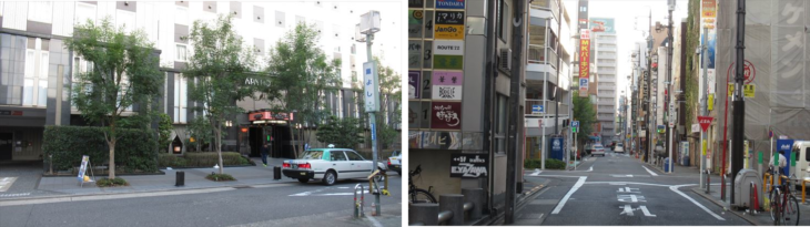 名古屋の朝、快晴なり。本日も雲一つなし。ホテルとその周辺の朝の様子です。