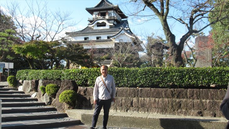 本日最後の観光は木曽川のほとりの小高い丘の上にある犬山城。このお城には歴史的なドラマはありませんが、天守閣が現存されてる建物の価値が認められ国宝に指定されています。石段を10分位登ると犬山城の天守台に到着、そこはこじんまりと整備された場所、綺麗でした。